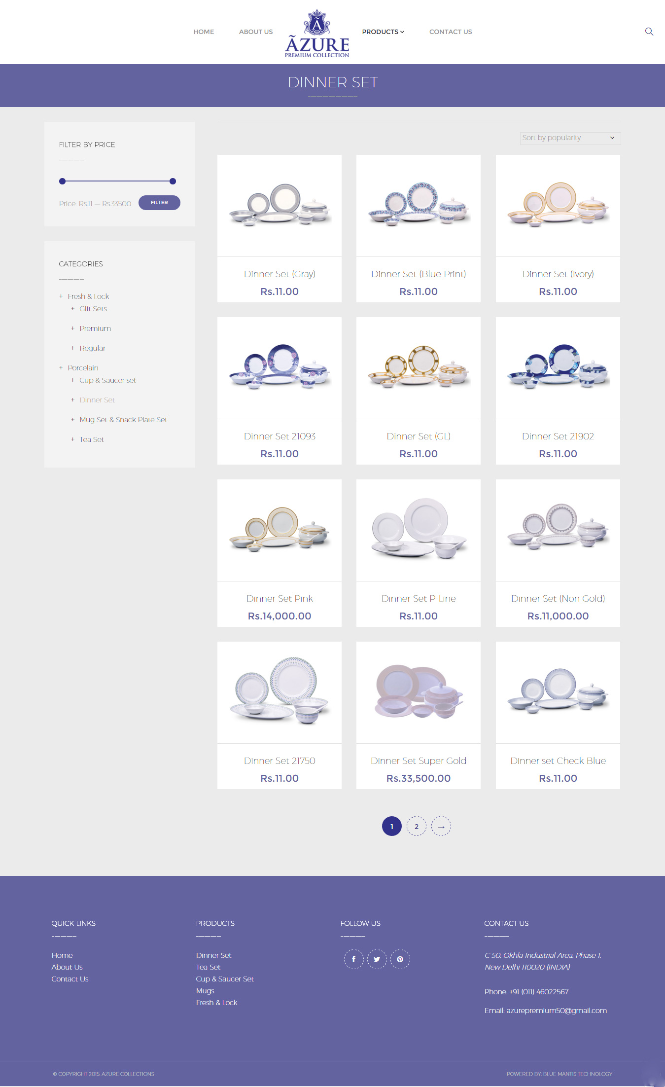 LEARN MOREHindustan enterprises New Delhi of Brand Premium Porcelain Tableware proudly presents their luxurious modern website named AZURE Collections, which is based on VELO – an online retail WordPress template for bike shops and other online retail products. Their website targets anyone that has an interest in porcelain items such as dinner sets, tea sets, cups & saucers, mugs and more.