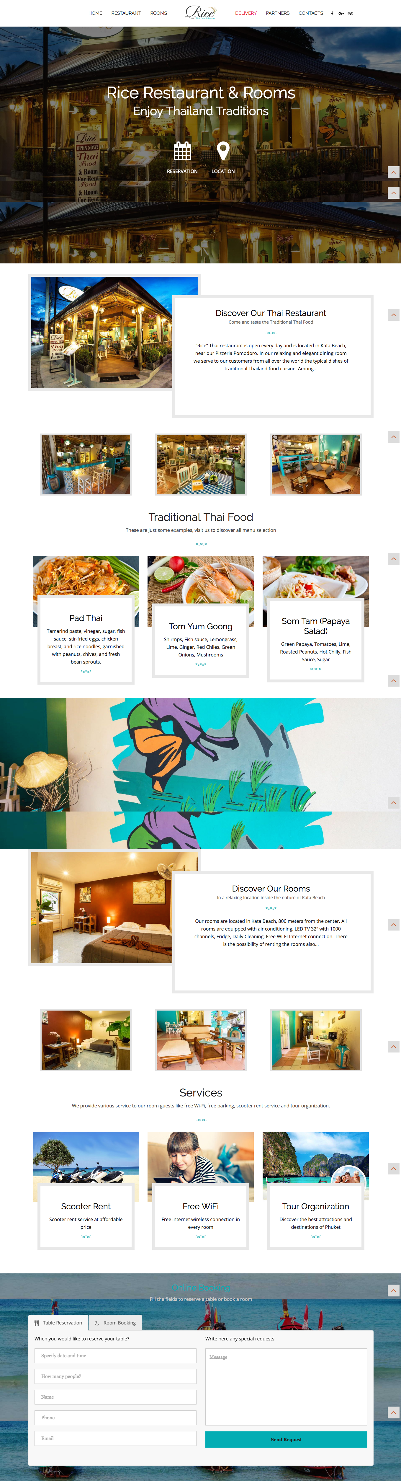 With ricekataphuket.com, the creators have successfully changed the original theme into a marvelous website of their own. The most notable difference between the theme and this website is the color tone. They have changed the dark color tone of Gusteau into a much brighter one, generating a feeling of peacefulness in people when they look at it. Their dishes are also arranged in a neat and eye-catching order, which ensures customers’ satisfaction when booking tables for their meals. In conclusion, I believe ricekataphuket.com will be a rising star in the online business of food and cuisine.