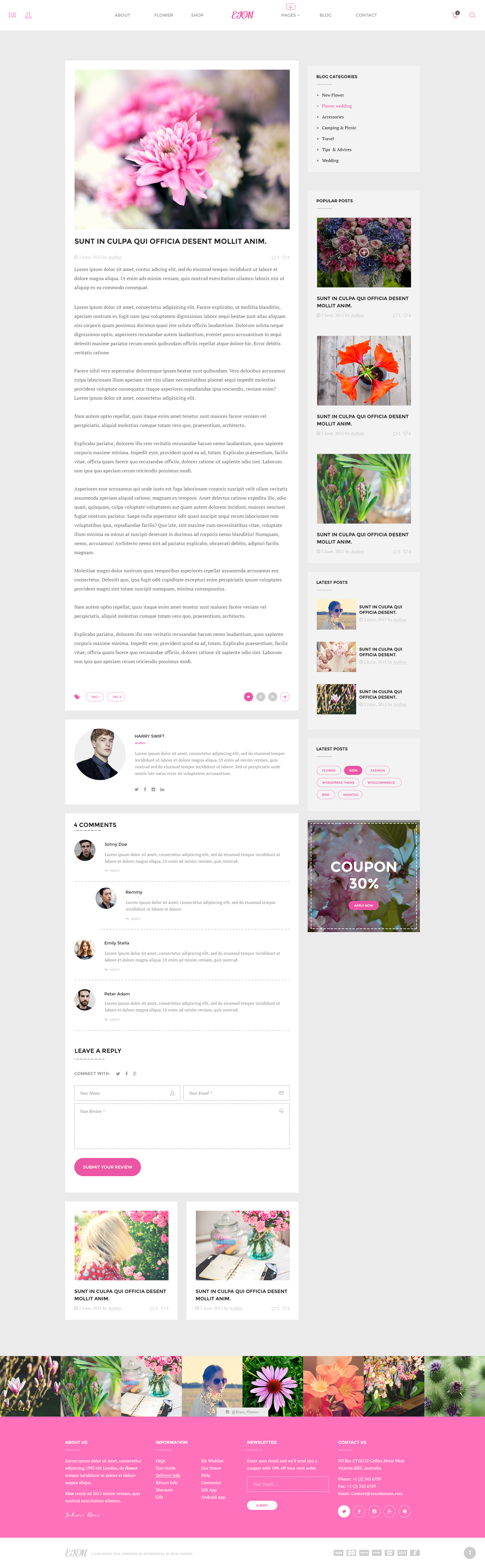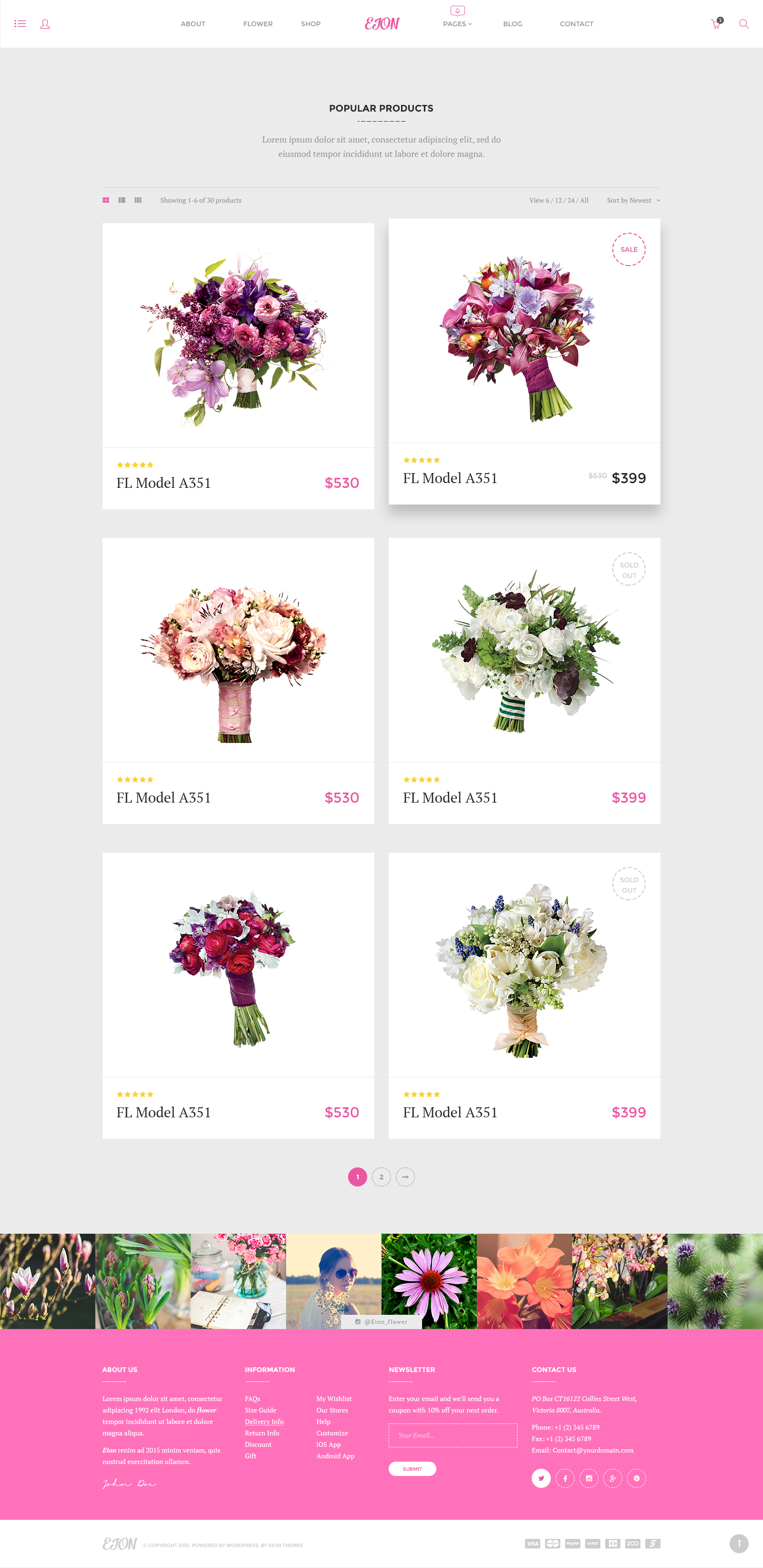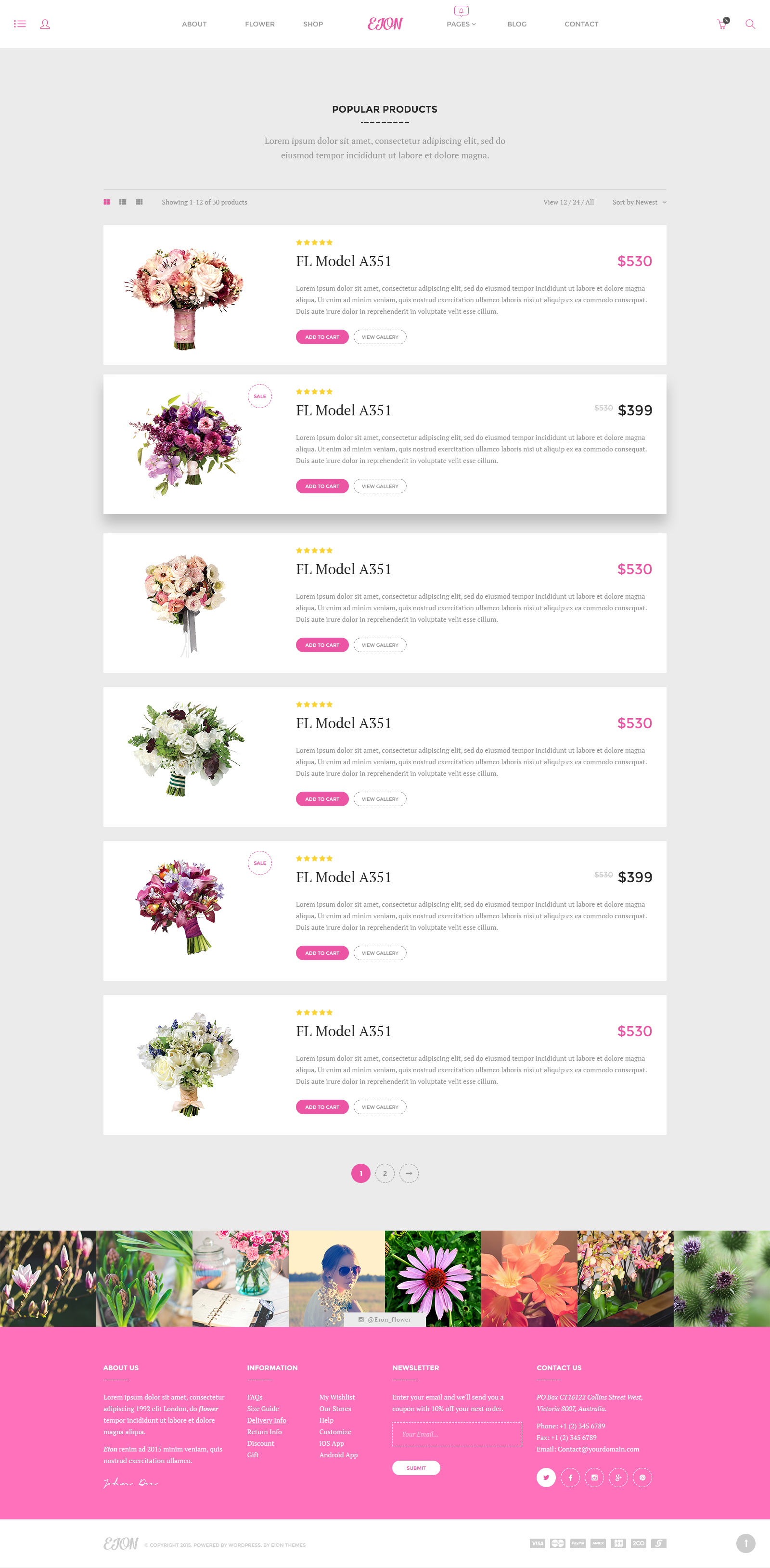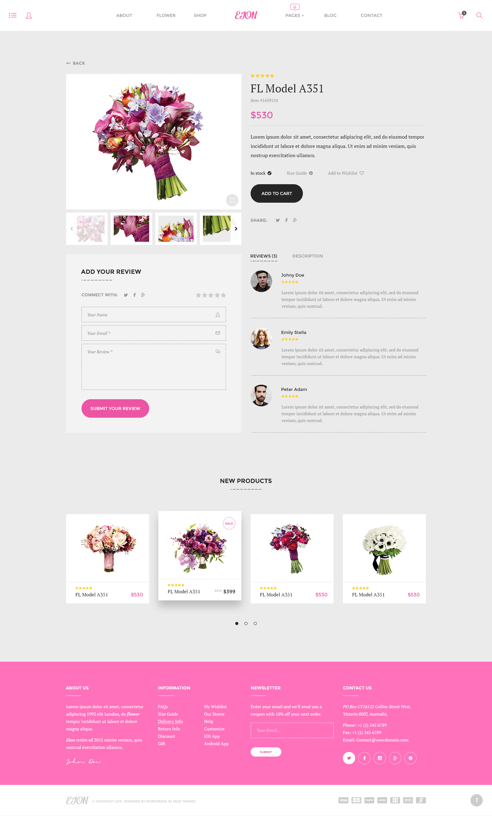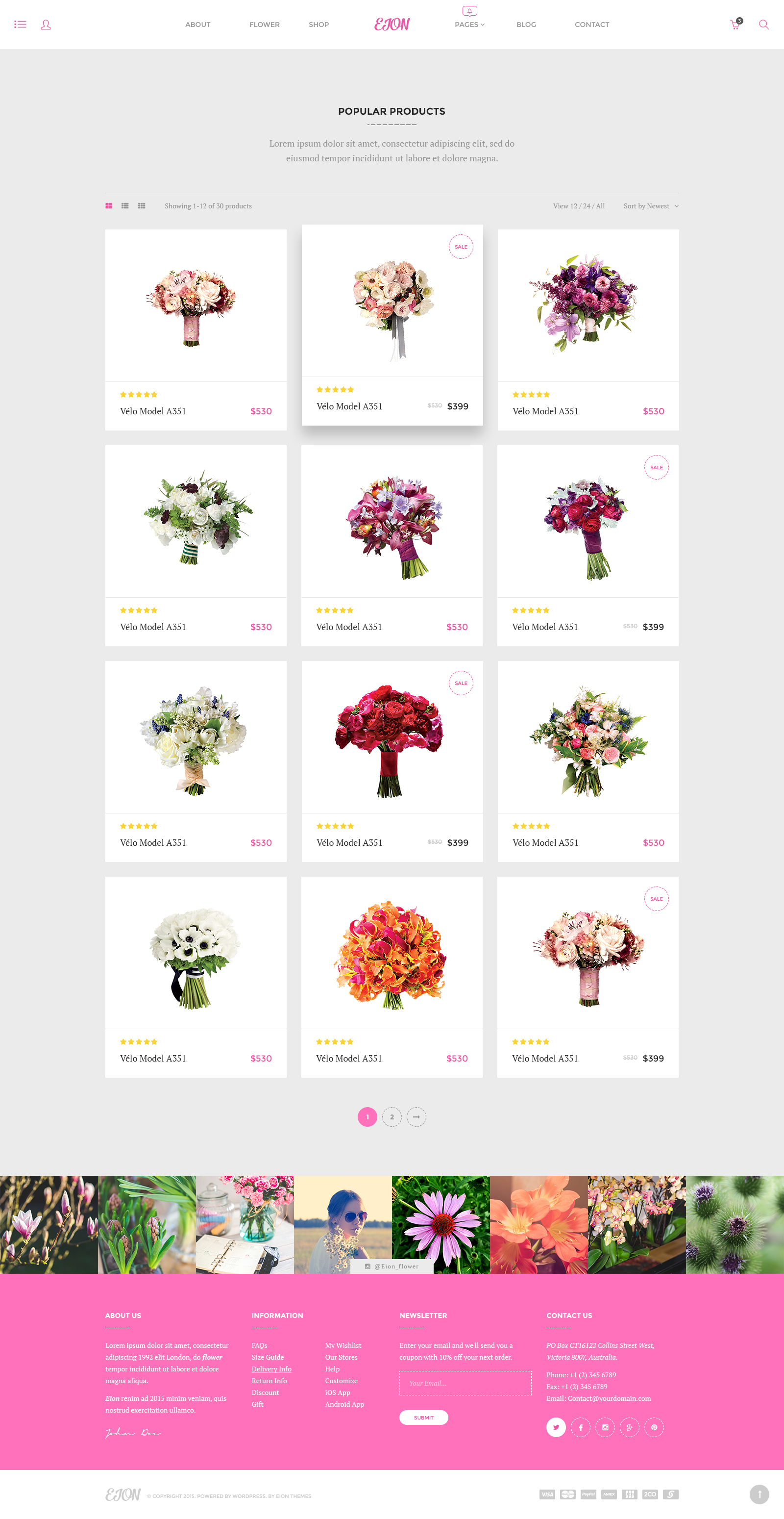 Based on one of our Premium WordPress Theme – Vélo, EION is a free glamorous and charming PSD template for flower shops or beauty-specialized shops, is now available on Sunrisetheme. This should-not-be-missed product will never disappoint you for various features namely 3 Glamor homepage layouts, easy and customizable PSD files and font awesome icons, etc. Moreover, your customers would be seduced by pink color palettes and logically layered PSD files owned by EION.