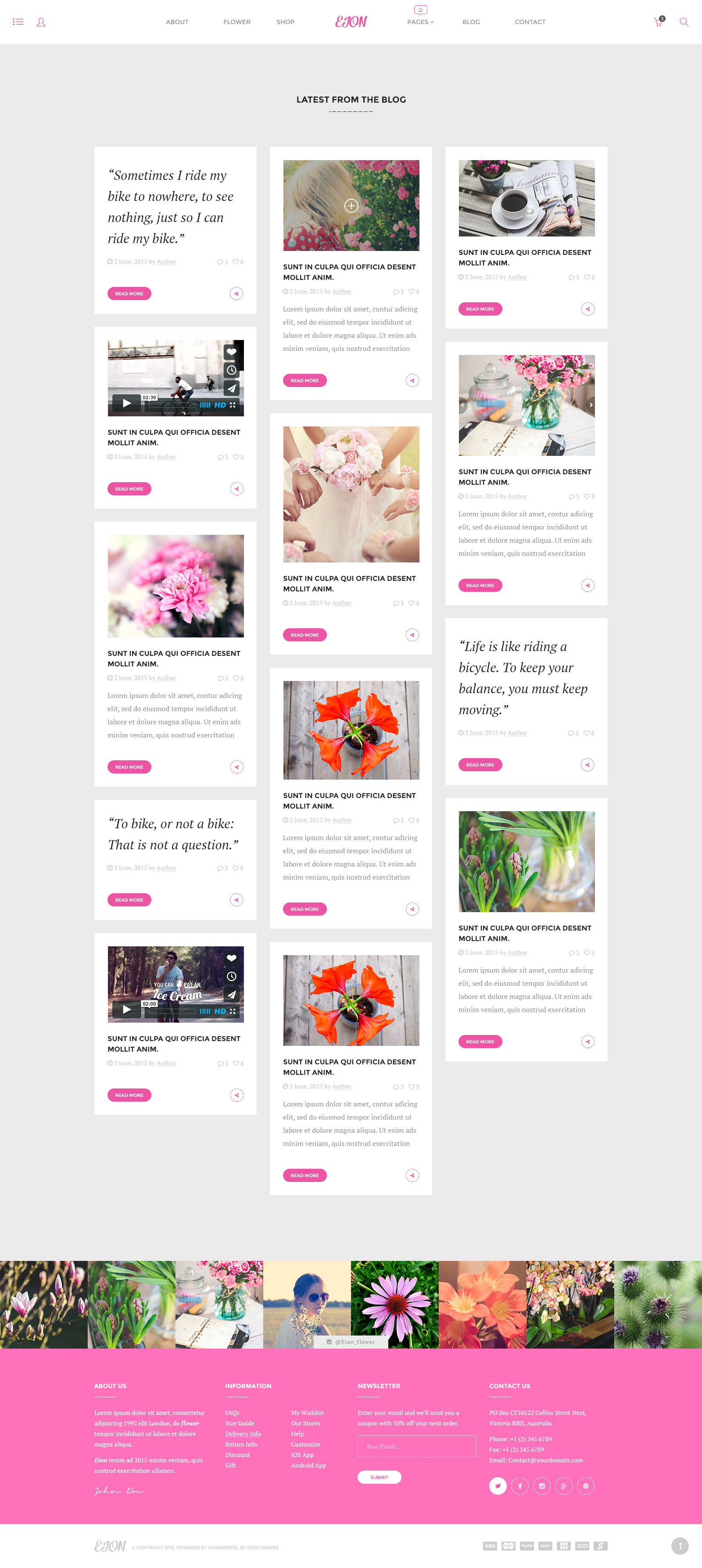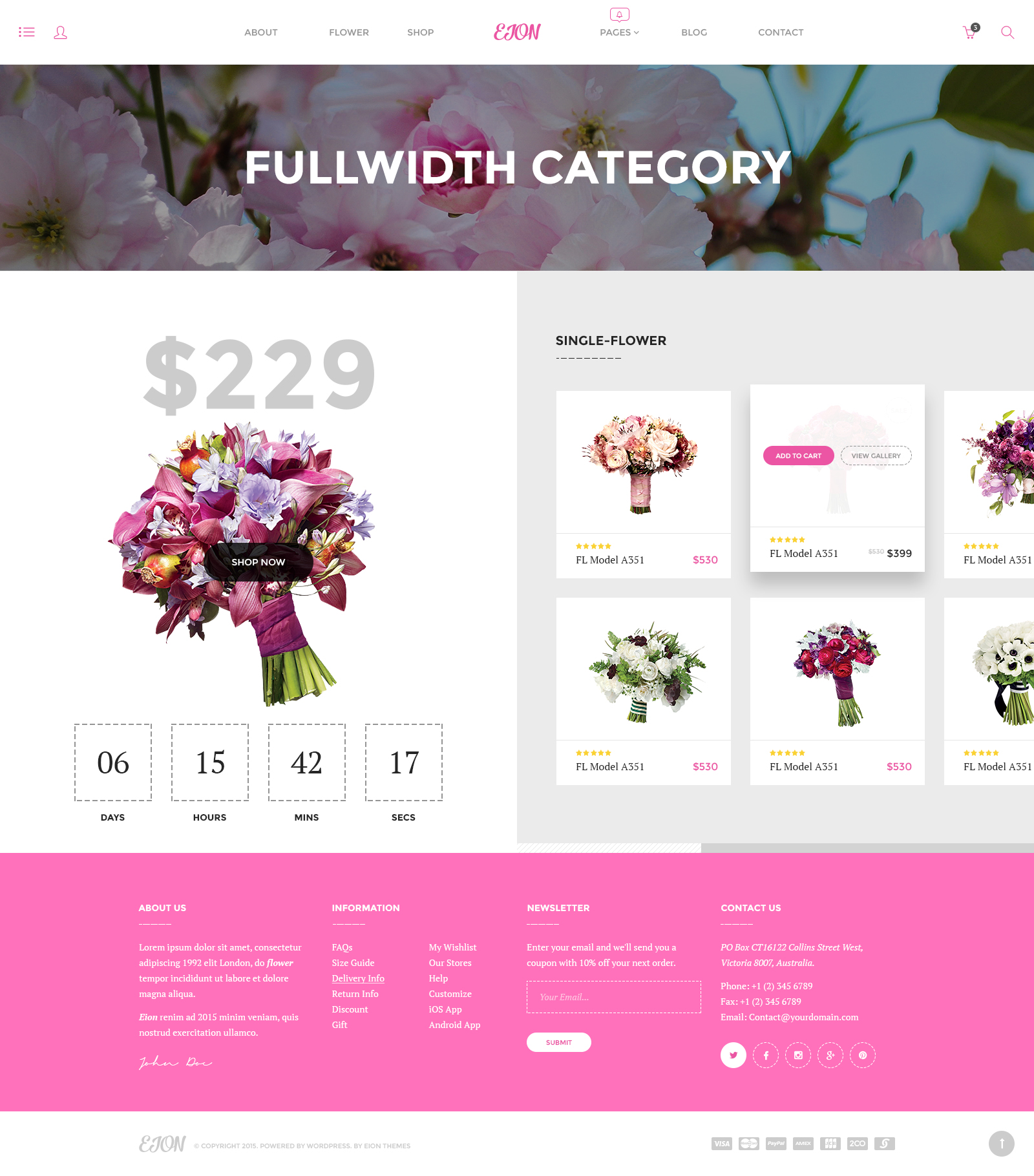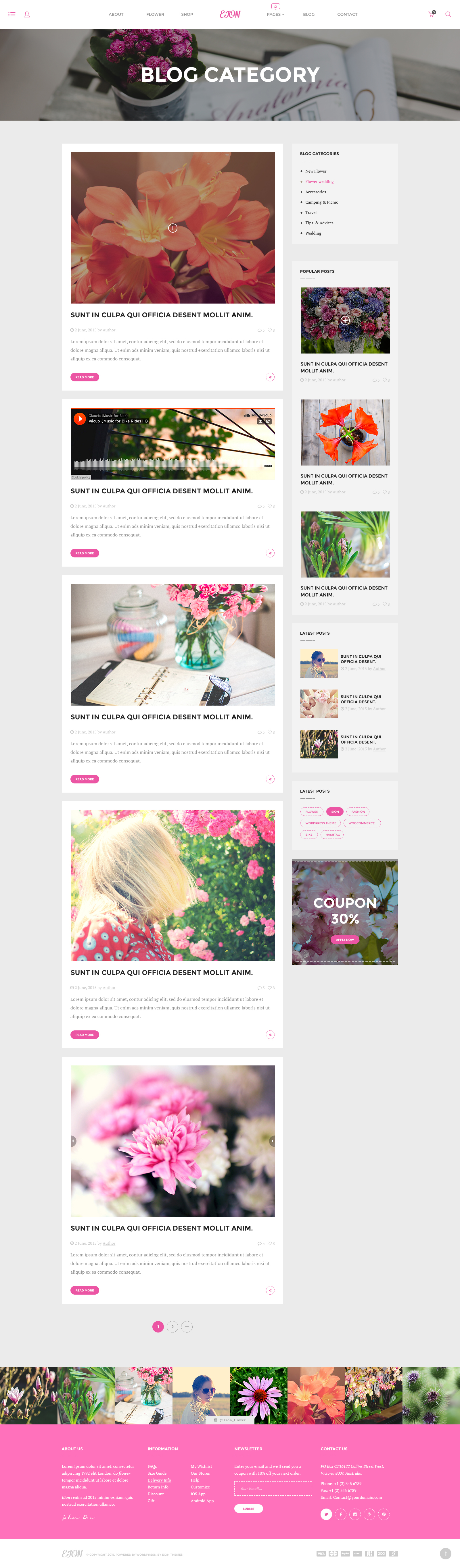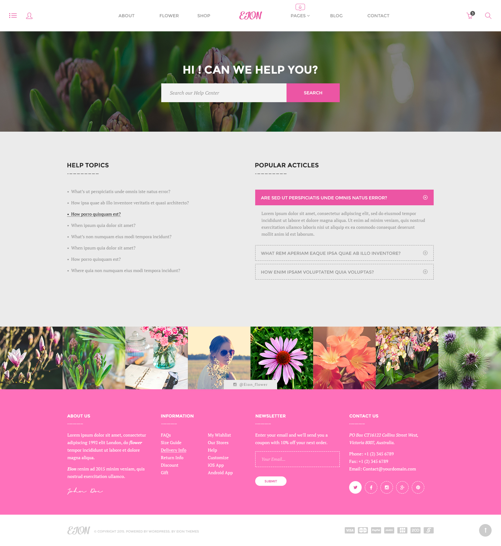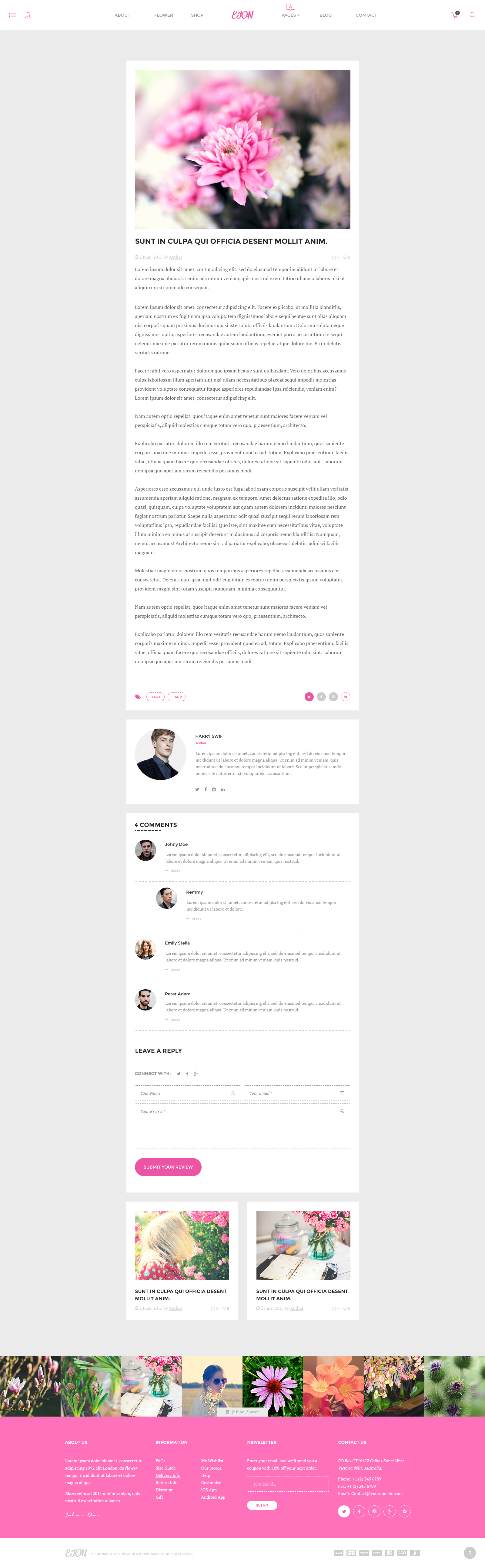 Based on one of our Premium WordPress Theme – Vélo, EION is a free glamorous and charming PSD template for flower shops or beauty-specialized shops, is now available on Sunrisetheme. This should-not-be-missed product will never disappoint you for various features namely 3 Glamor homepage layouts, easy and customizable PSD files and font awesome icons, etc. Moreover, your customers would be seduced by pink color palettes and logically layered PSD files owned by EION.