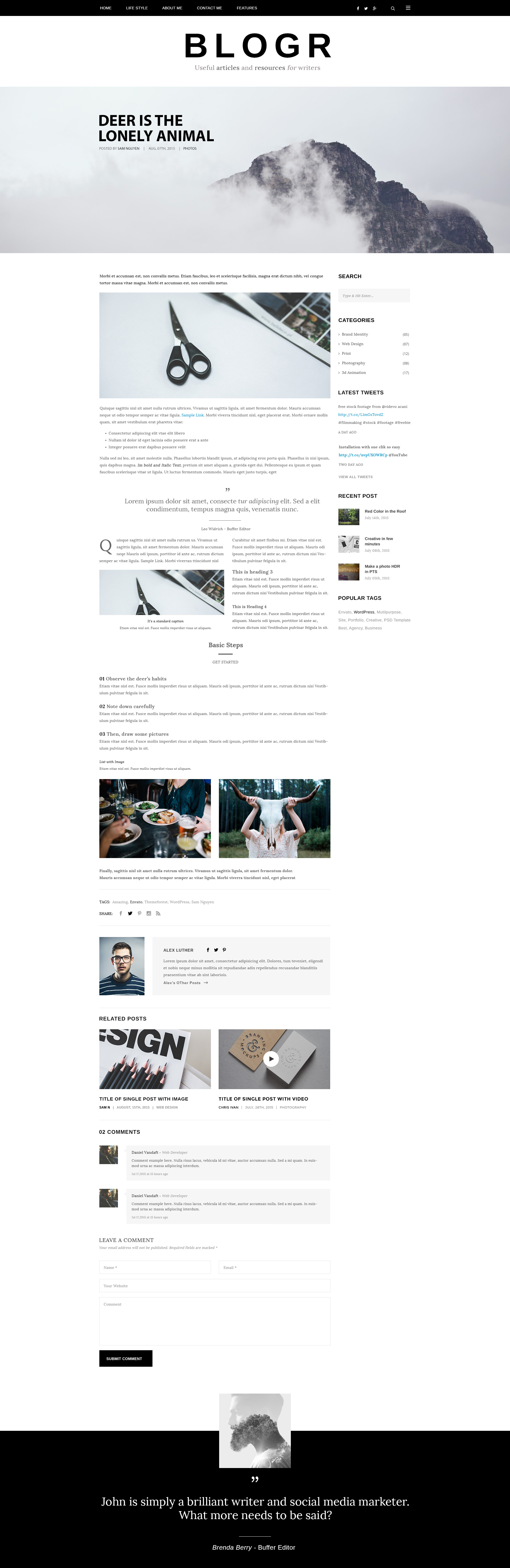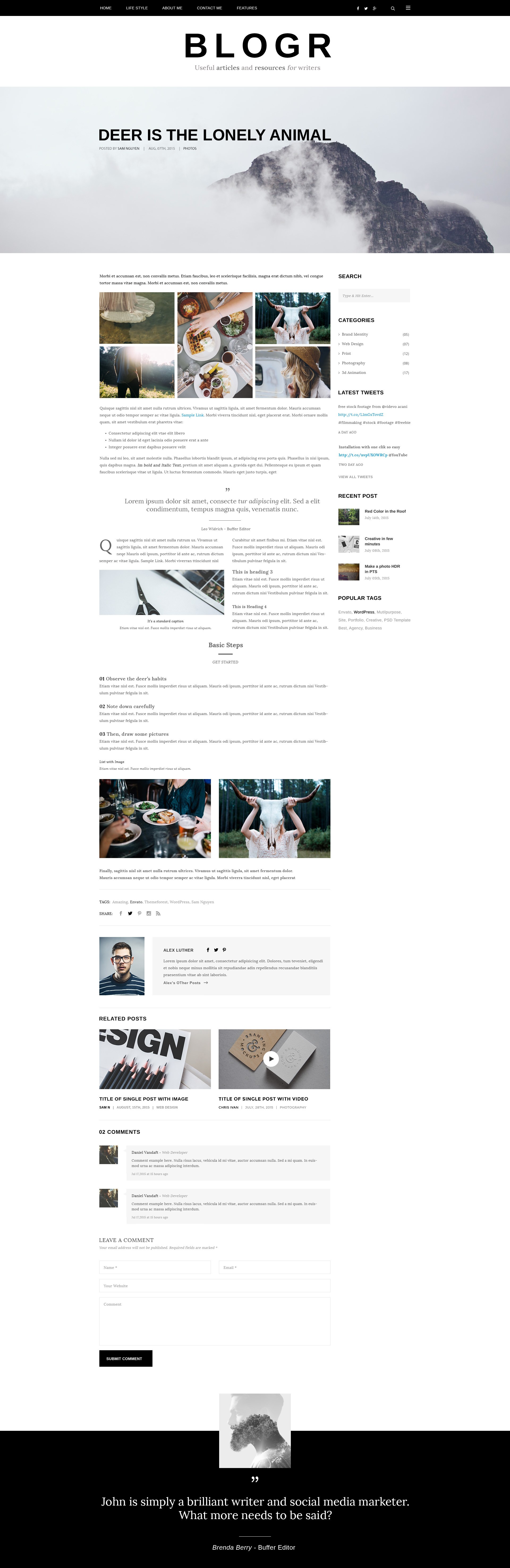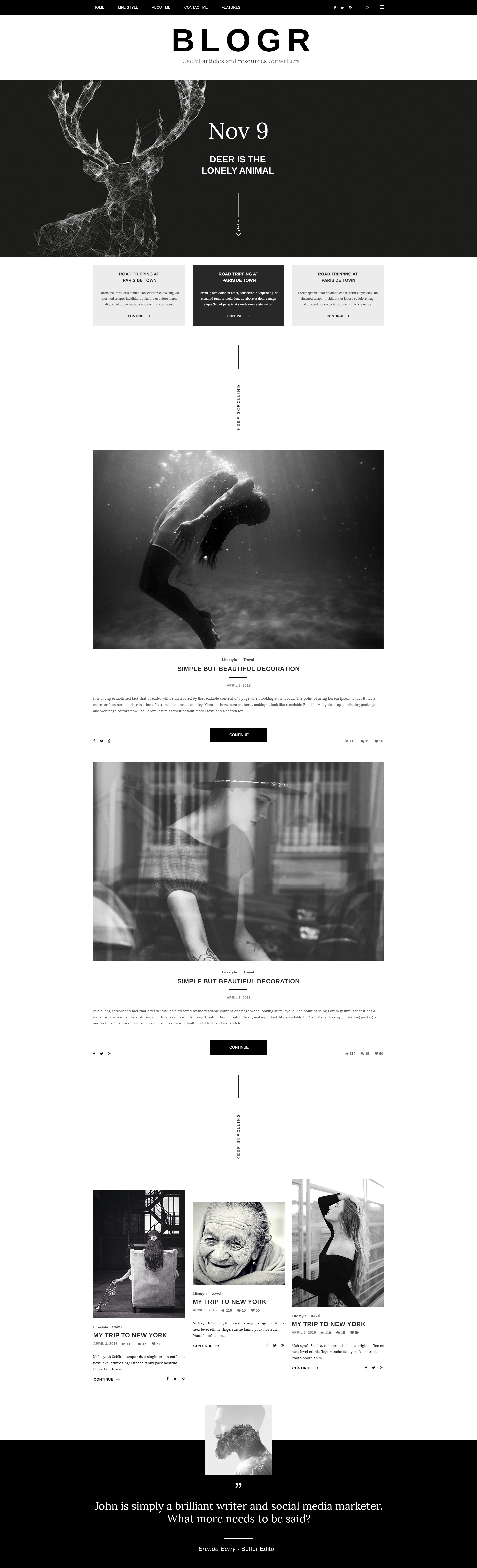 LEARN MOREBLOGR is a personal PSD blog template for special writers and content marketer. We strongly believe that when you choose this PSD template, you are a serious blogger who care so much for your readers and your writing career.