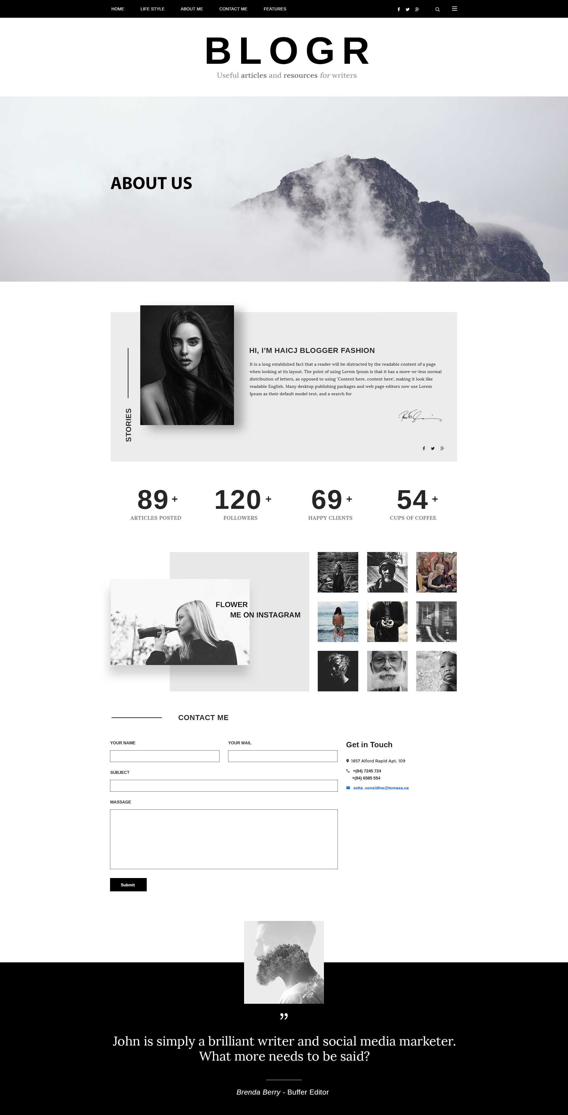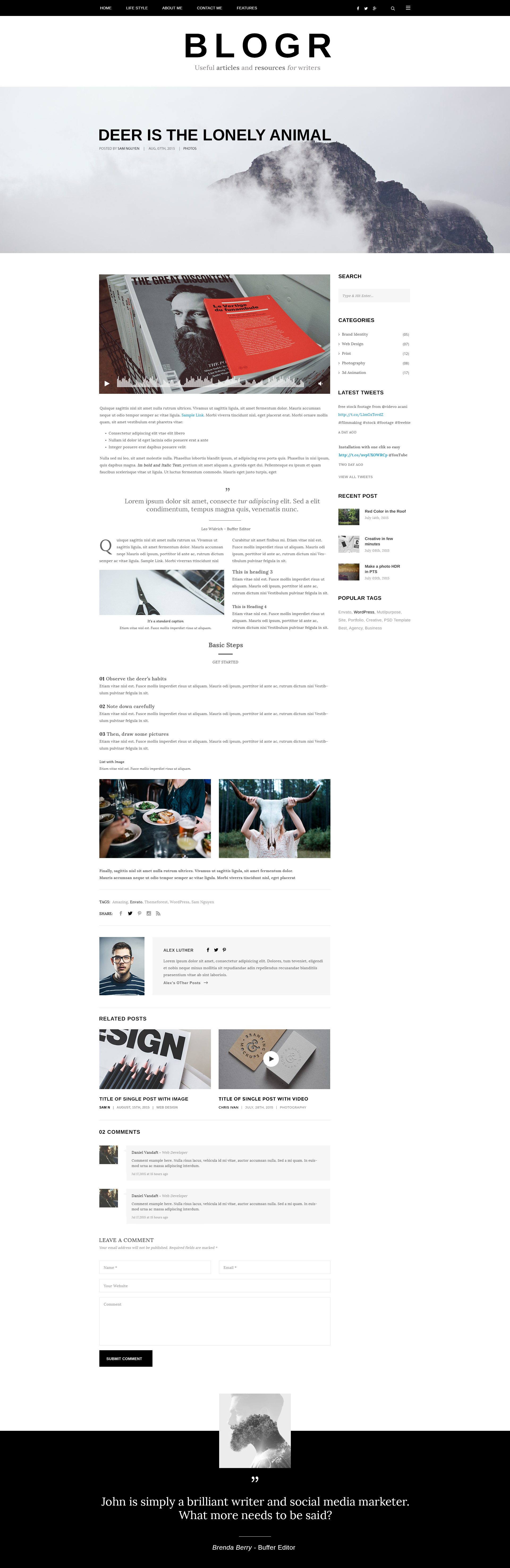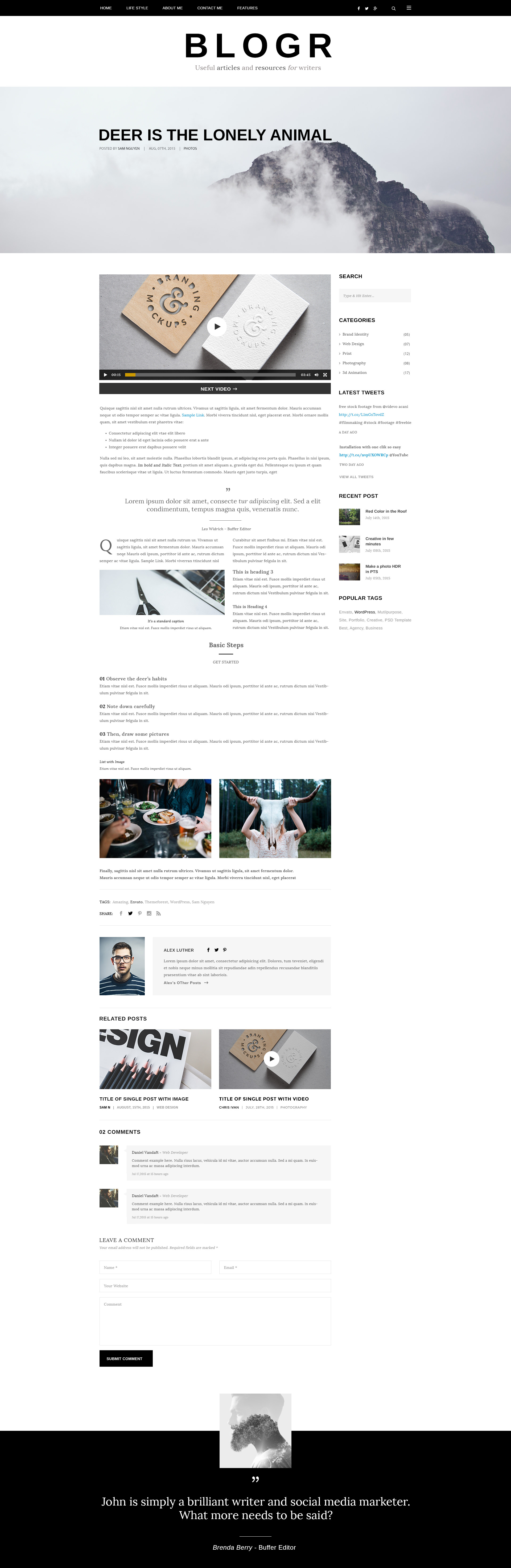 LEARN MOREBLOGR is a personal PSD blog template for special writers and content marketer. We strongly believe that when you choose this PSD template, you are a serious blogger who care so much for your readers and your writing career.
