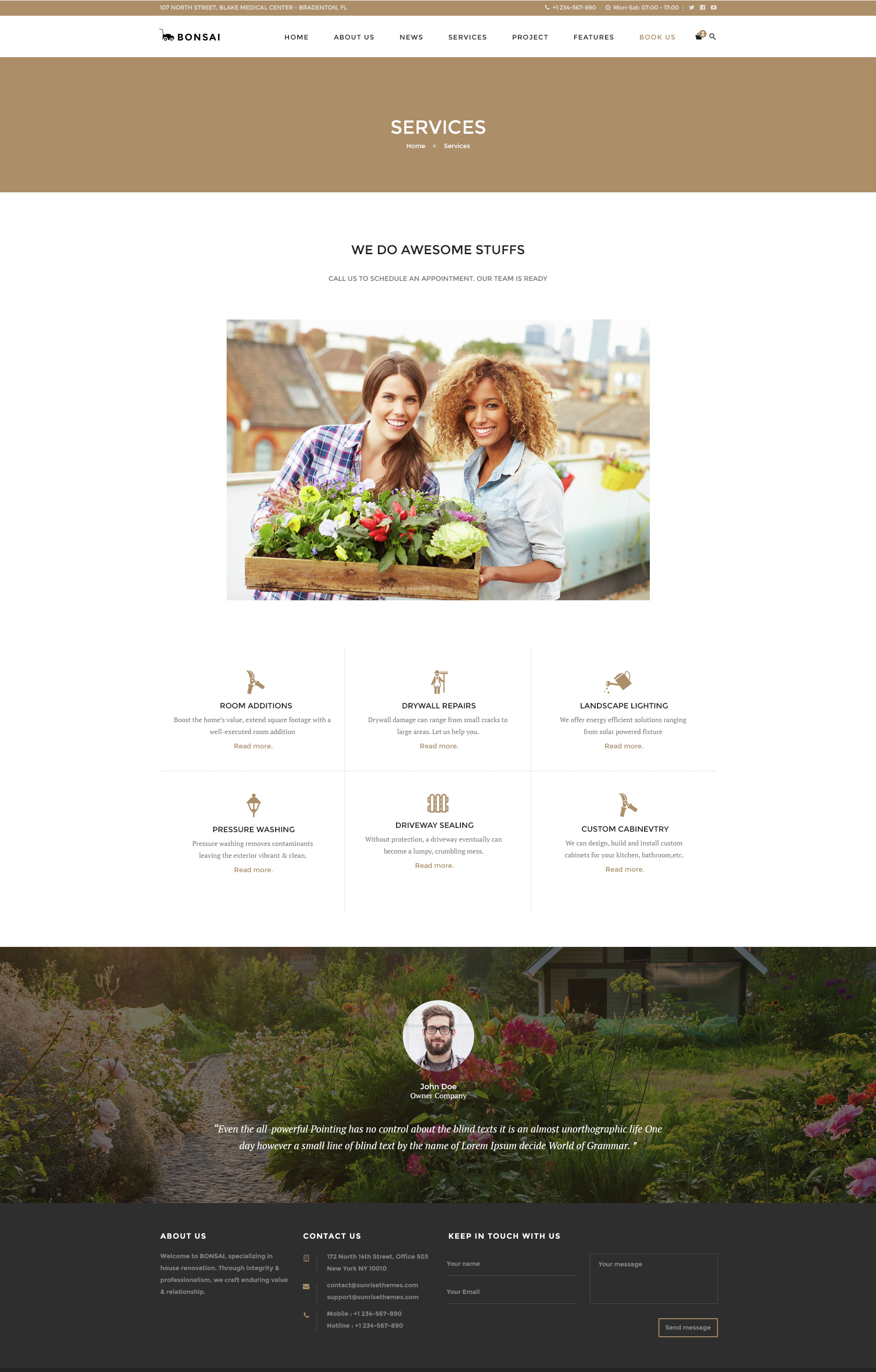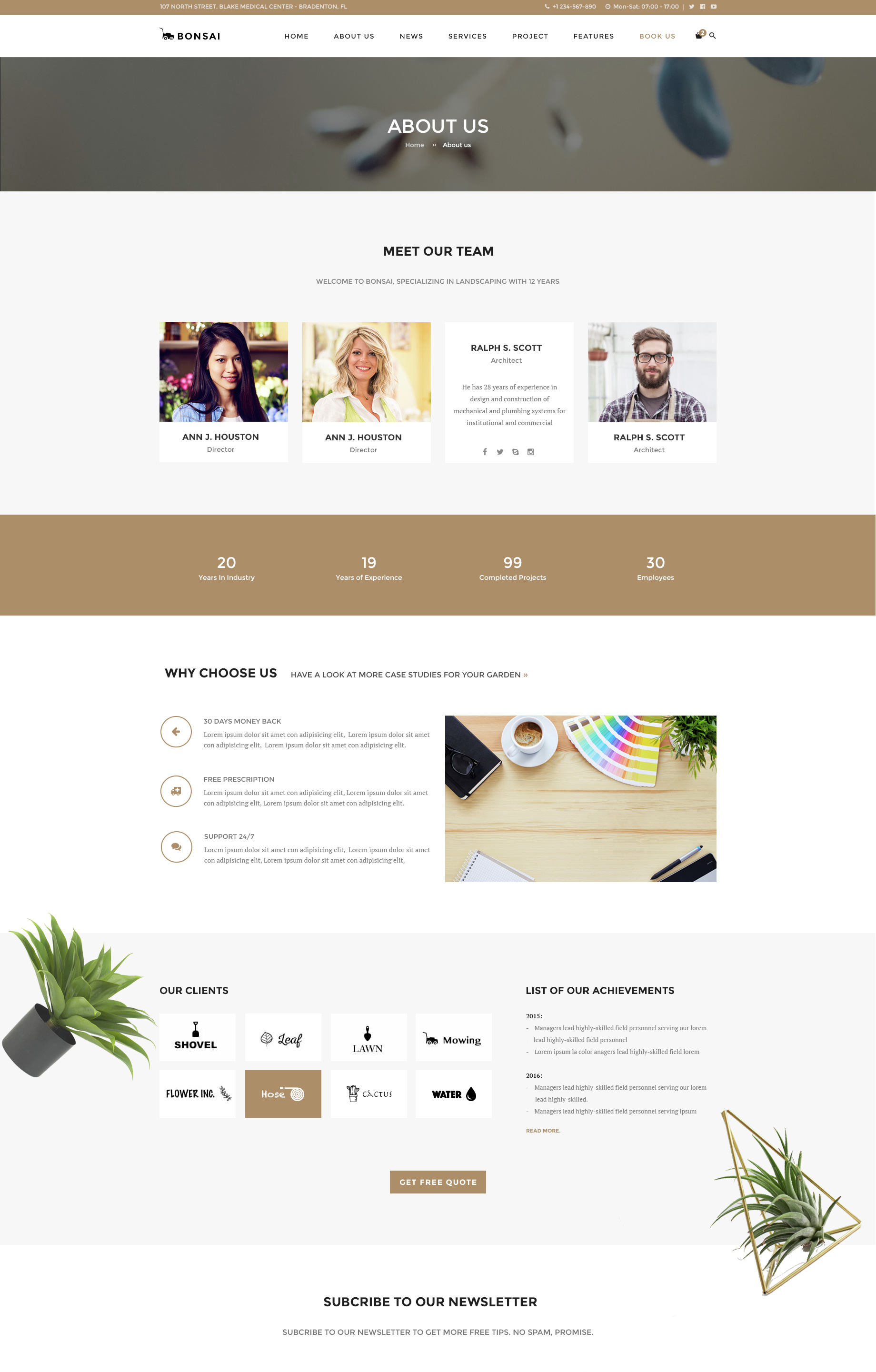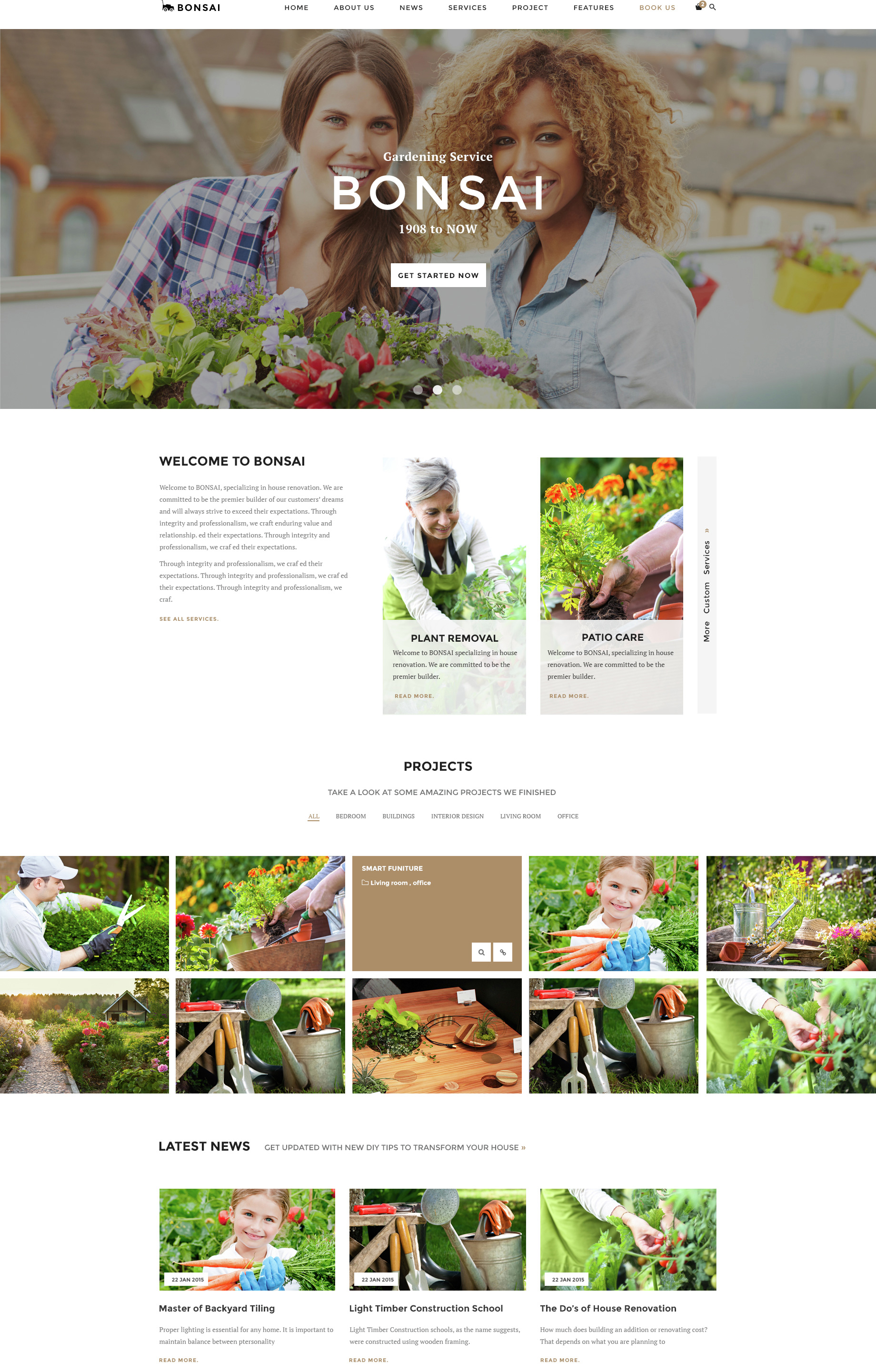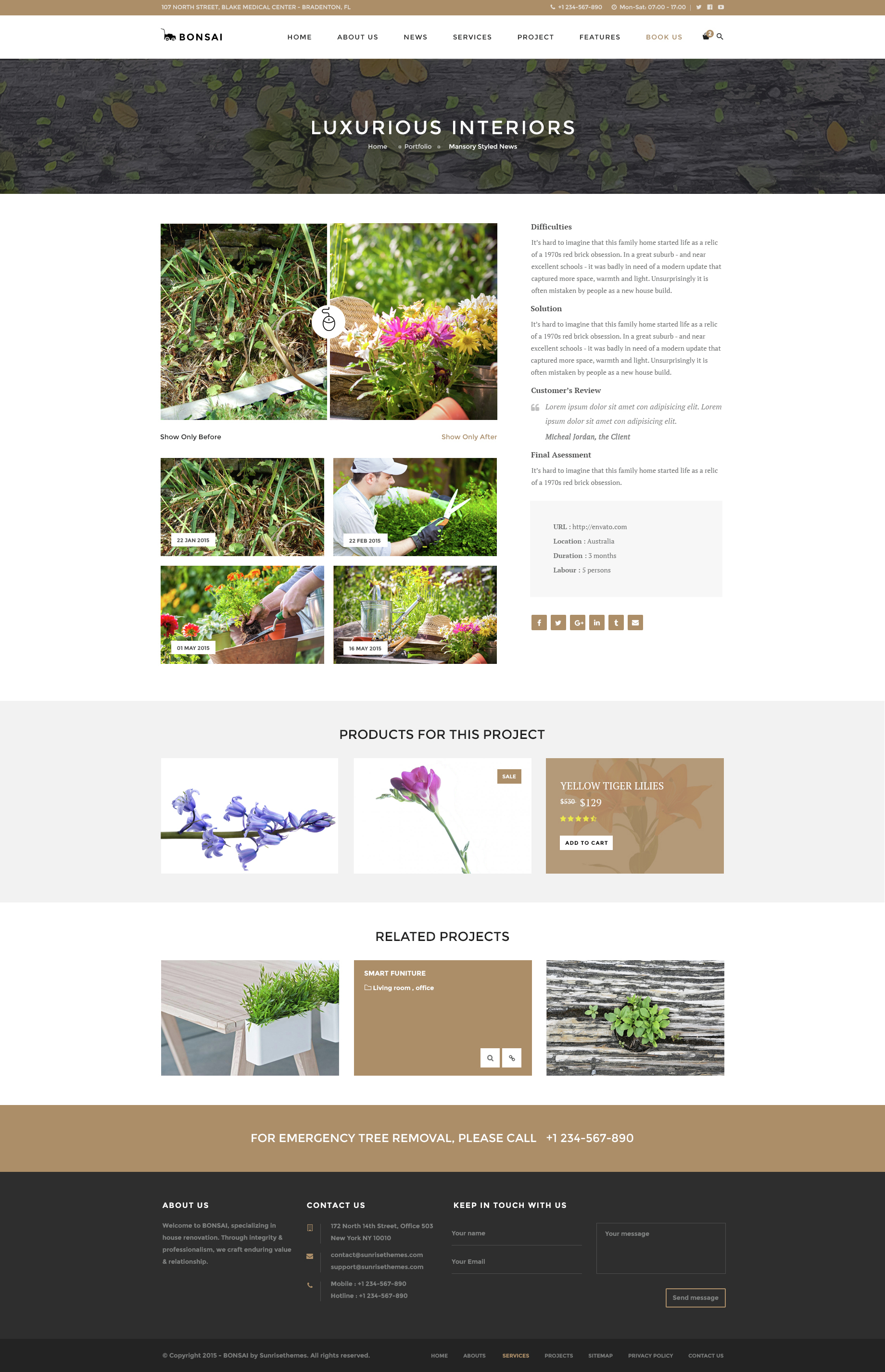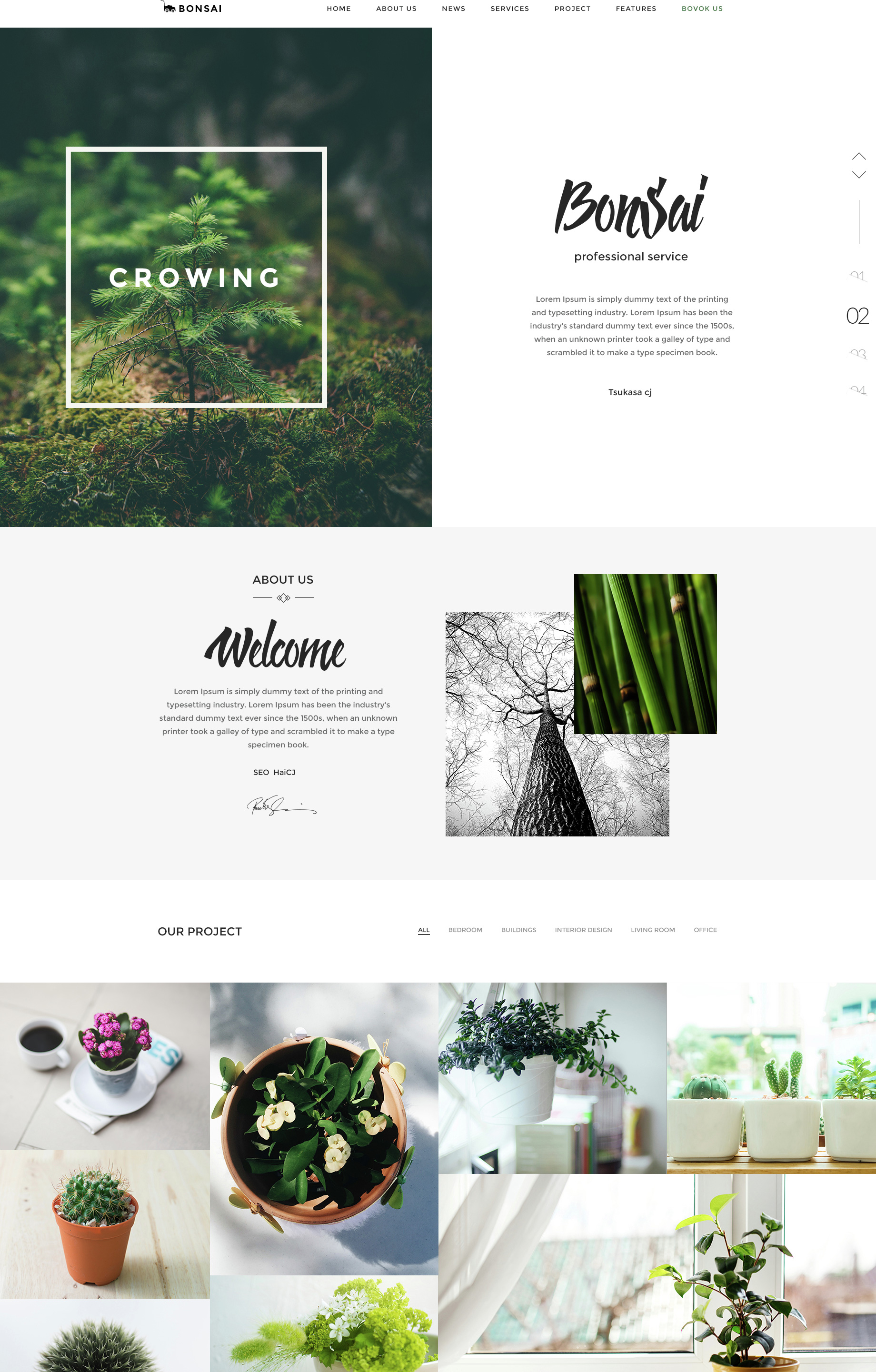 BONSAI is a landscape & lawn PSD template for outdoor/interior designer, landscaper, gardener and other related services. It’s designed based on real experience of professional landscapers we have worked with. Take little time to view all screenshots and you can see the thoughtful arrangement in the template. Furthermore, the primary color is the Pantone’s color of 2016, which will help your website look fresh and trending than an ordinary website of a gardener. With variable page layouts, another suggested color swatch and meaningful sample template, you website will be outstanding than ever.