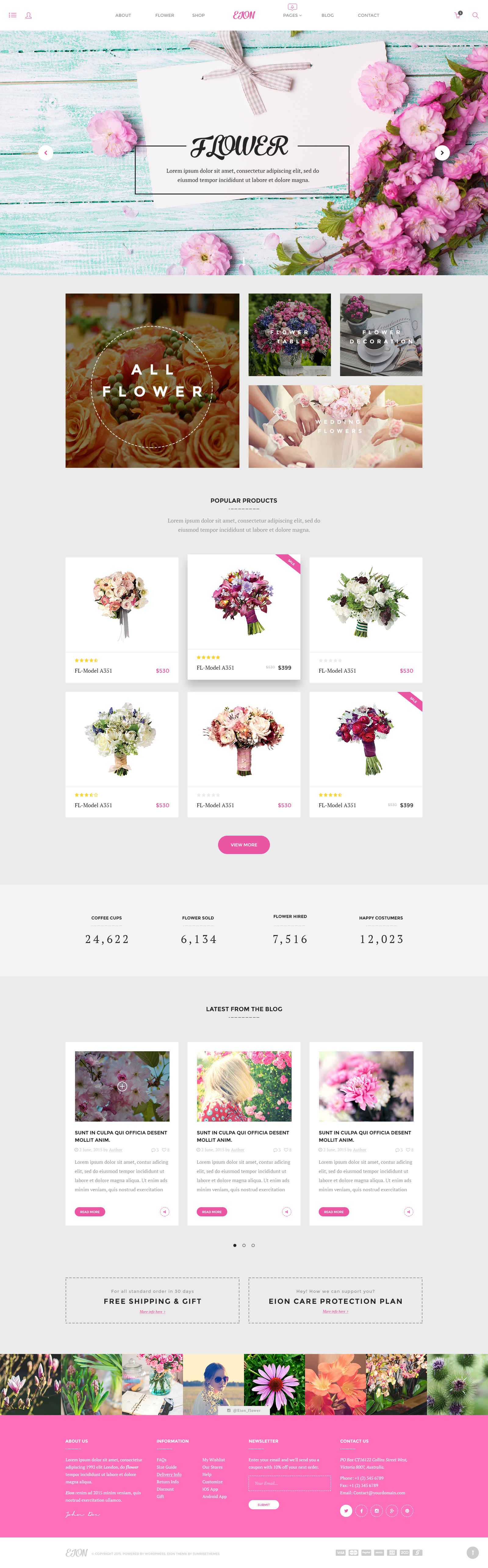 LEARN MOREEion is truly a glamor flower shop WordPress Theme with an aesthetically-pleased design. Inspired by flowers, Eion has got both modern and charming with its pink color palette. Aside from, it is absolutely ideal for beauty, accessories, fashion, cosmetic, watches, jewelry shops and so much more. Eion includes 03 very modern and detailed home pages with layouts for a blog, online store, search bar, blog categories, shopping cart. In addition this, Eion provides plenty of places for you to upload images or share content. Other pages included is the Under Construction, Contact, About, FAQs, Checkout.