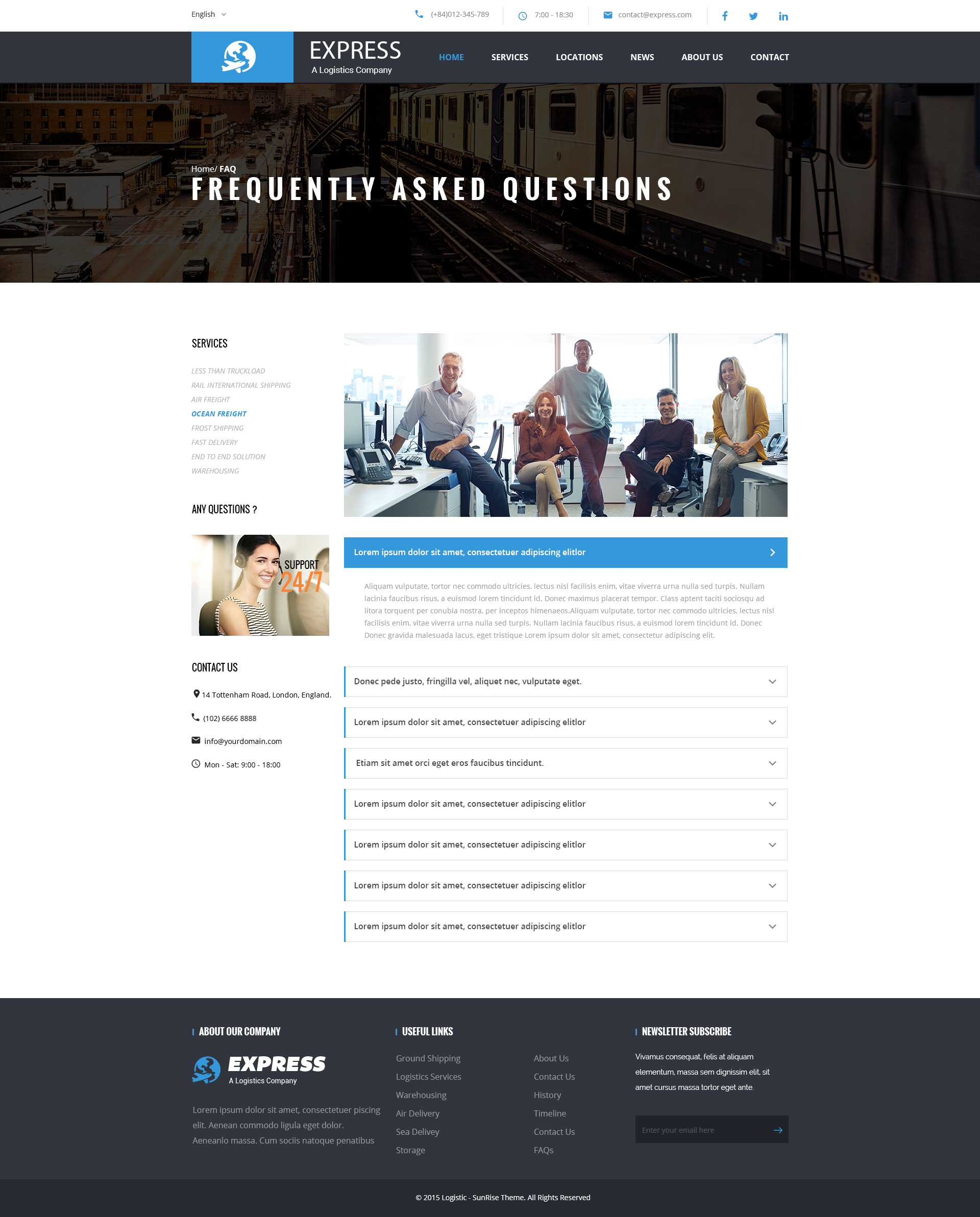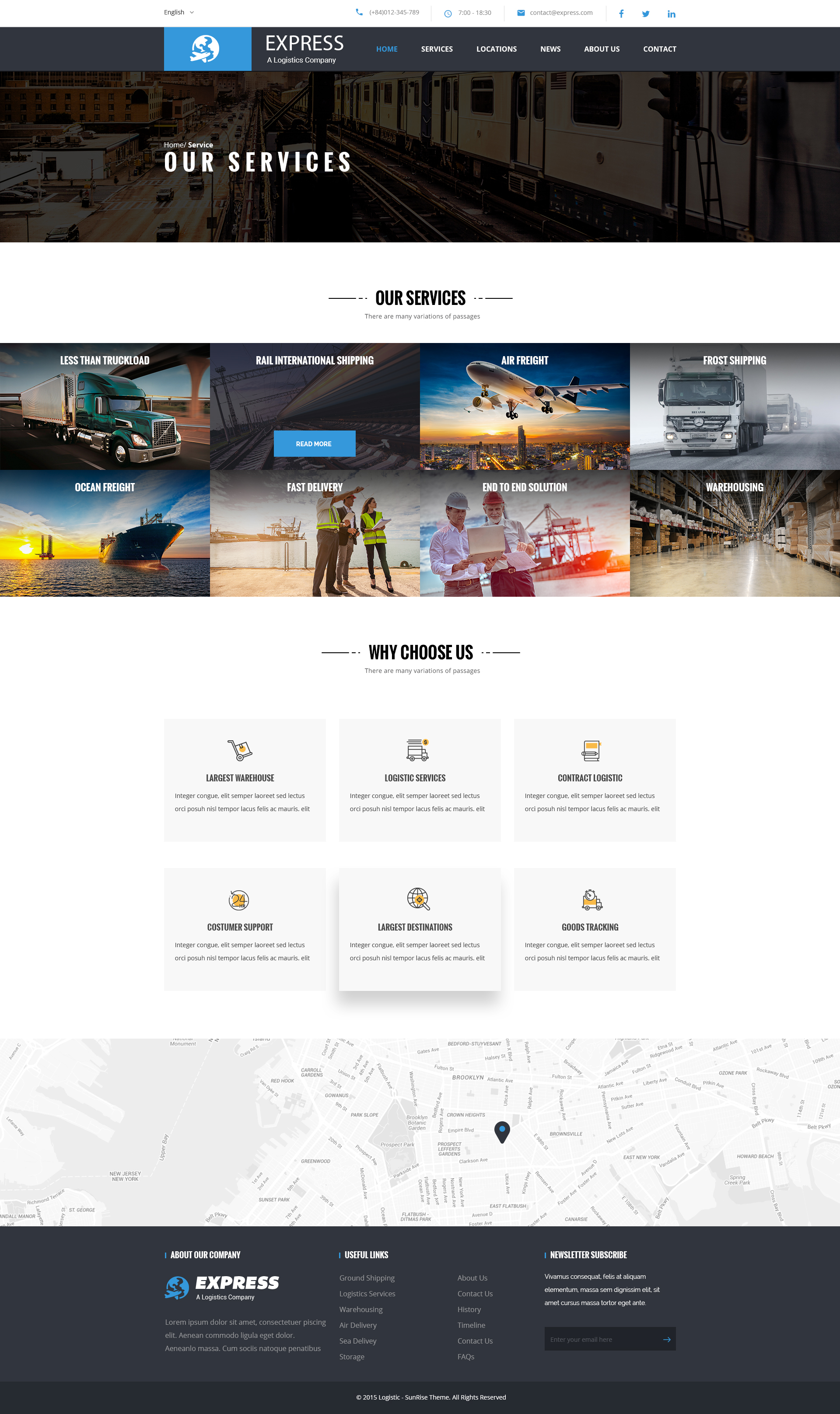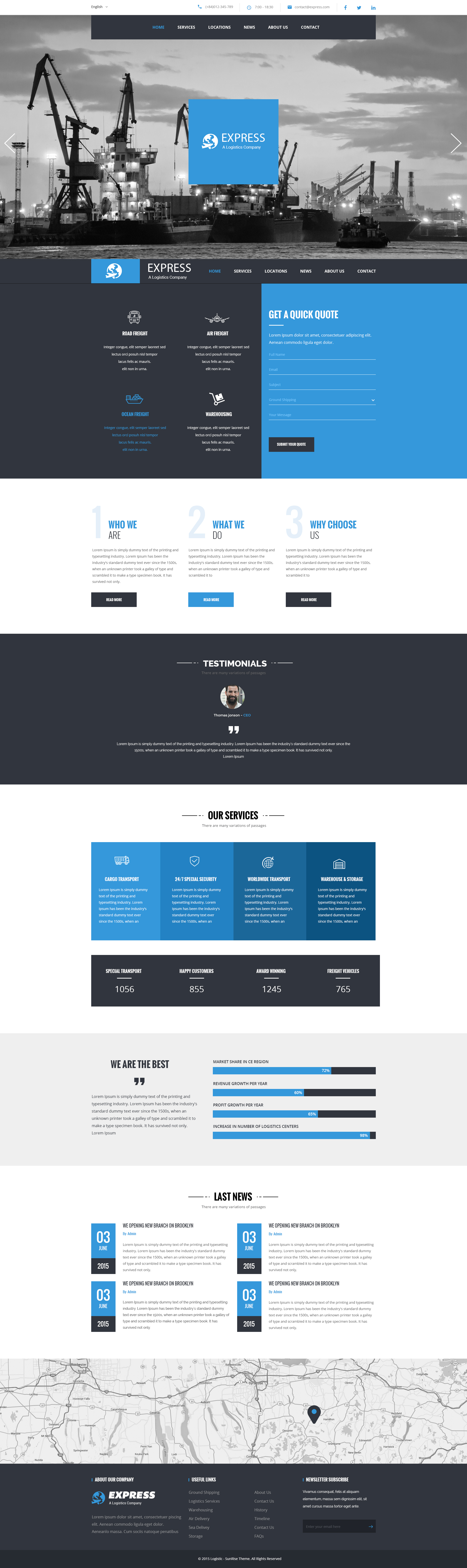 LEARN MOREExpress is a premium responsive WordPress theme crafted especially for cargo, logistics, trucking, transportation companies, warehouse and freight business. This amazing template is very easy to setup and use. Express comes with loads of great features like custom components, web fonts, custom plugins, animated content & powerful CSS3 animations. We studied and reviewed hundreds of logistic sites across the web before planning the features of the theme and plugins to ensure we covered all functions and abilities.