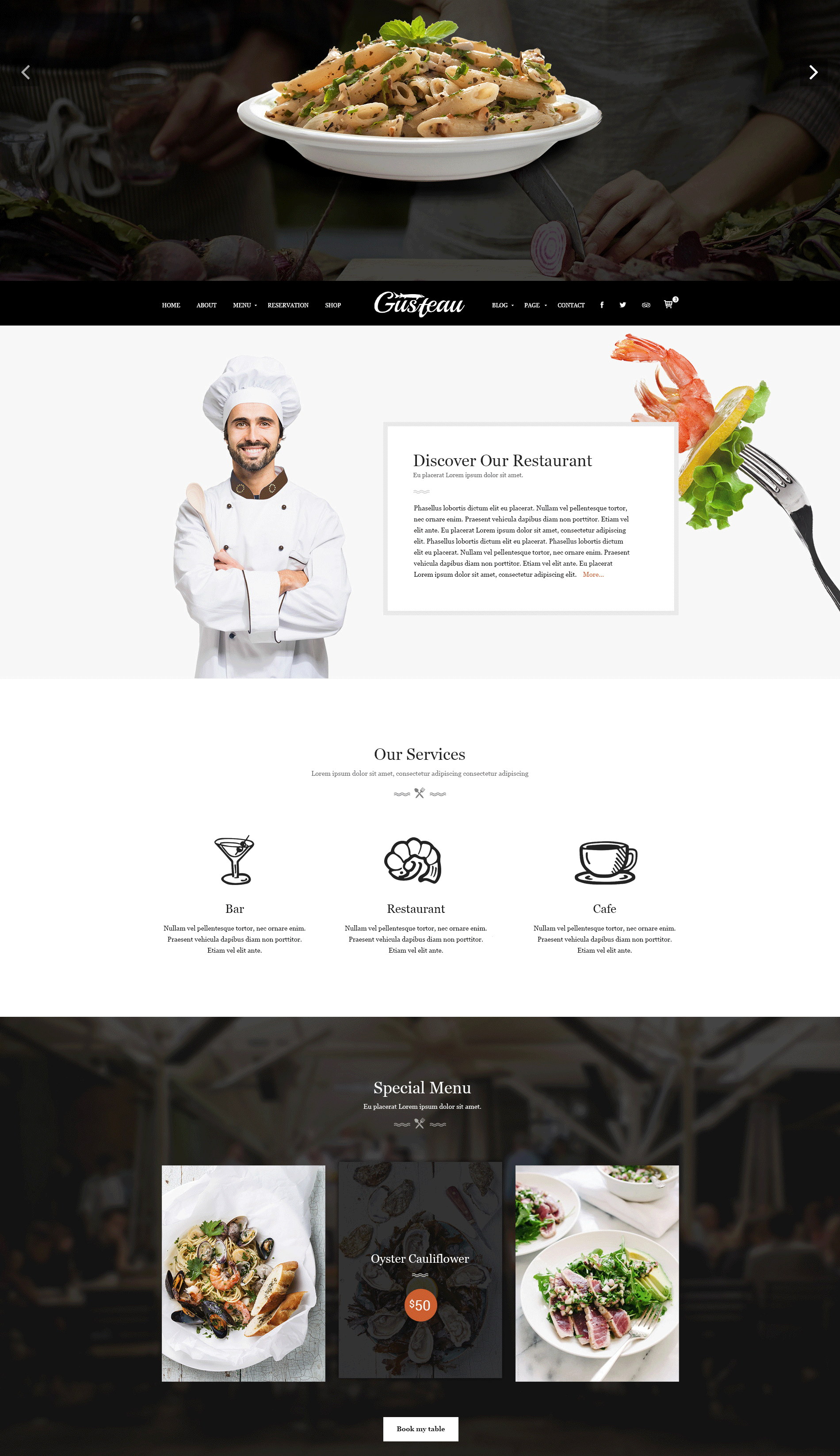 LEARN MOREGusteau is an elegant food and restaurant HTML Template which is specially built for all restaurant and coffee, bar sites with powerful features such as really smooth animation effects, various excellent menu and gallery layouts, beautiful and unique shop layouts.